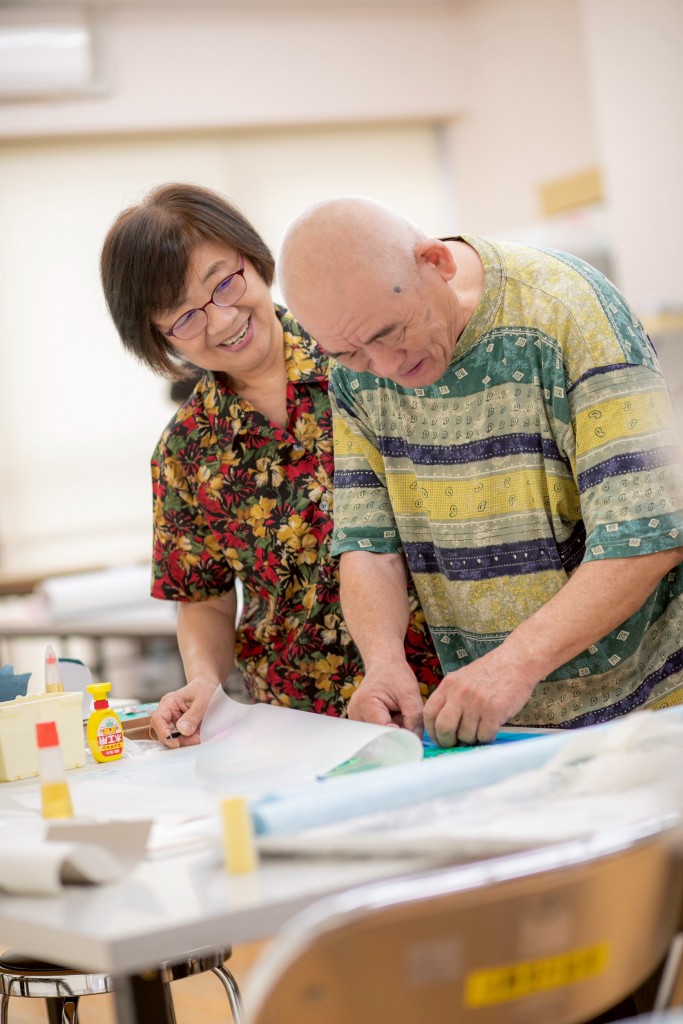 そして今年のアートセラピーでは、大隅さんはご友人ご夫婦と行かれた富士山の旅行をテーマに作品を作られました。一目見て「大隅さんの作品だなぁ!」と分かるくらい、あたたかい作品に仕上がっています。本当に素晴らしい作品です。